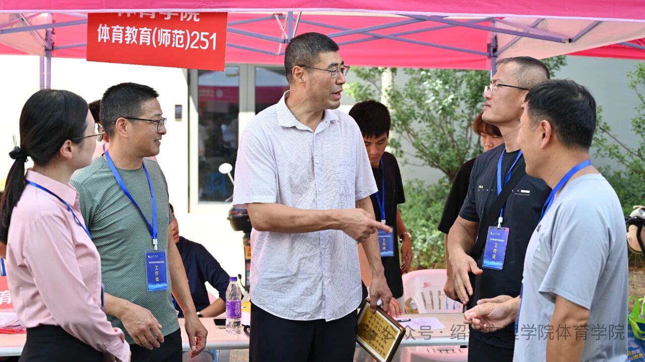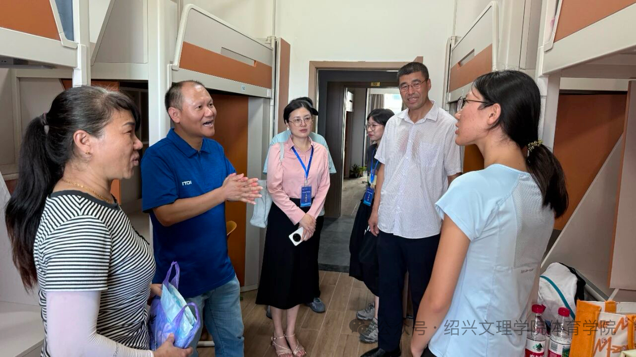 8月29日上午,校党政领导班子成员柳国庆、黄曼和相关职能处室负责人走访我院新生报到现场,关心了解新生报到情况,亲切慰问现场的工作人员和志愿者们。体育学院党政领导班子成员罗润锋、郭权、姚苗苗和学生科全体成员走进新生寝室,传递学院关怀与嘱托,倾听新生困惑,分享适应技巧,鼓励同学们主动调适集体生活,尽快完成从高中生到大学生的身份转变。同时重点强调安全防诈,提醒新生提高警惕、识别陷阱,呼吁同学间相互提醒,共建安全和谐的校园。声声关怀让新生倍感温暖,也为他们开启大学生活注入信心。