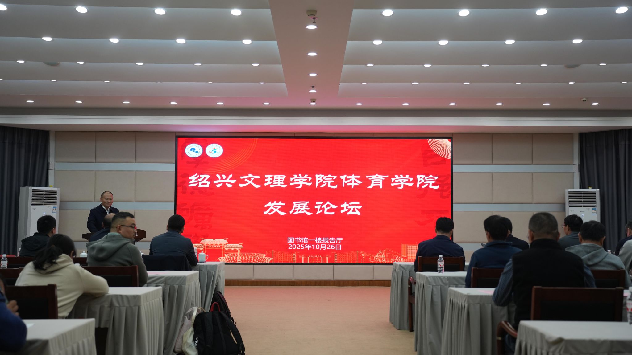 10月26日,绍兴文理学院体育学院发展论坛在图书馆一楼报告厅举行。校党委委员、宣传部部长宋浩成,特邀专家、学院领导班子成员、校友代表、体育学院教师和体育学院在读硕士研究生等参加论坛。论坛由体育学院党委书记罗润锋主持。