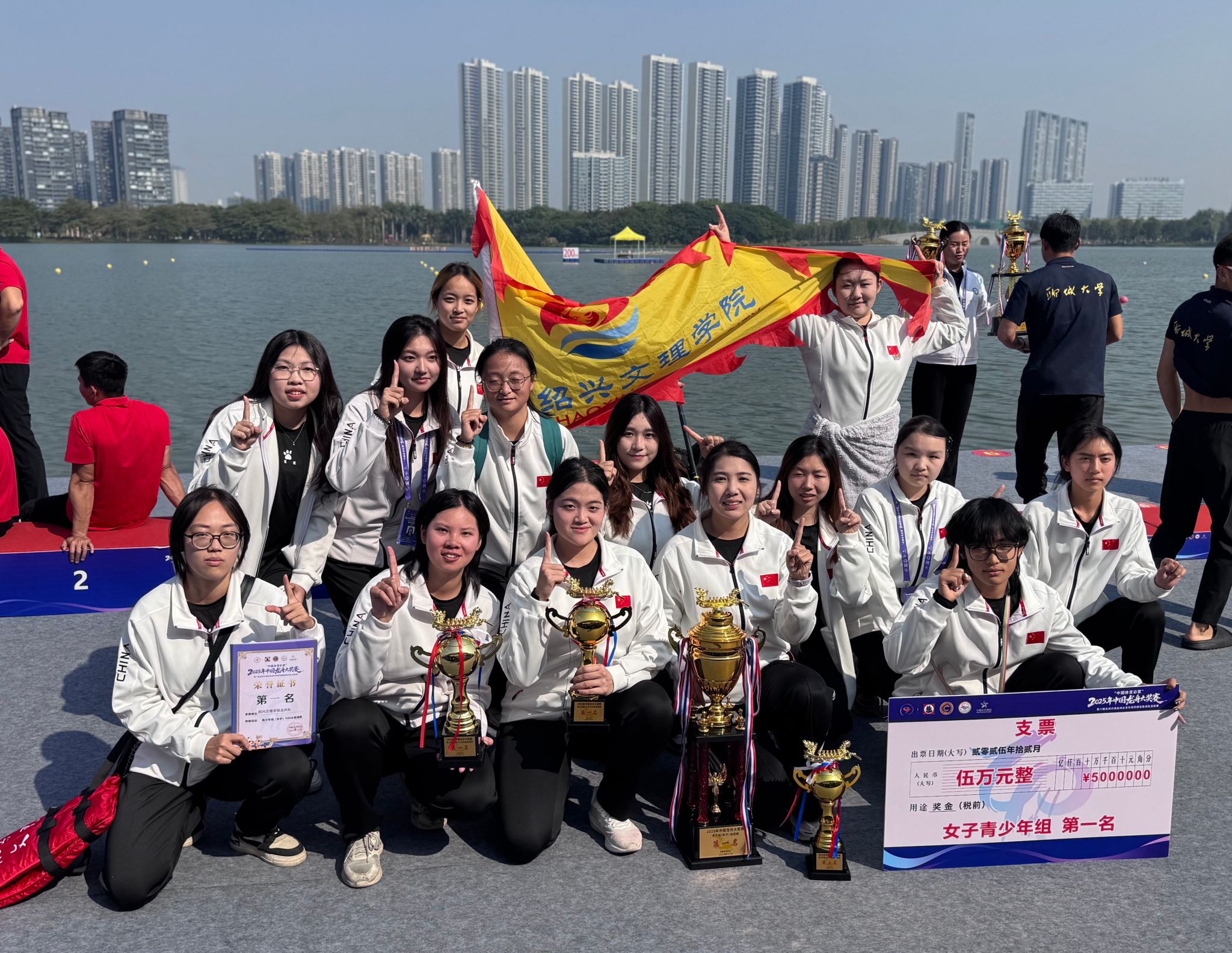12月7日,2025年中国龙舟大奖赛在顺德落下帷幕,我校龙舟队在青少年女子组12人龙舟项目中以默契的团队协作与稳定的竞技状态惊艳赛场,一举夺得200米直道赛第三,500米直道赛第一,1000米直道赛第一,总成绩更摘得该组别团体第一,这是我校龙舟队在全国性高级别赛事中取得的又一突破。