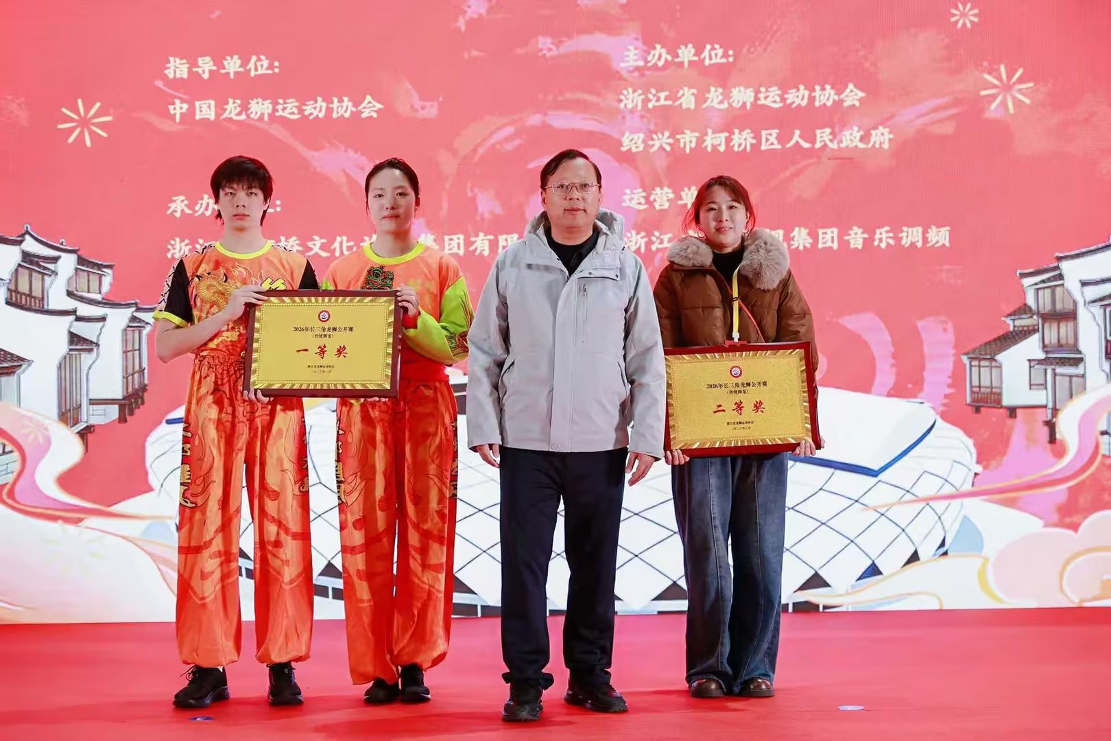3月2日至3日,2026年长三角龙狮公开赛在绍兴市柯桥区开赛。我校舞龙队队员们在赛场上奋勇拼搏,经过激烈角逐,最终夺得传统舞龙项目一等奖。