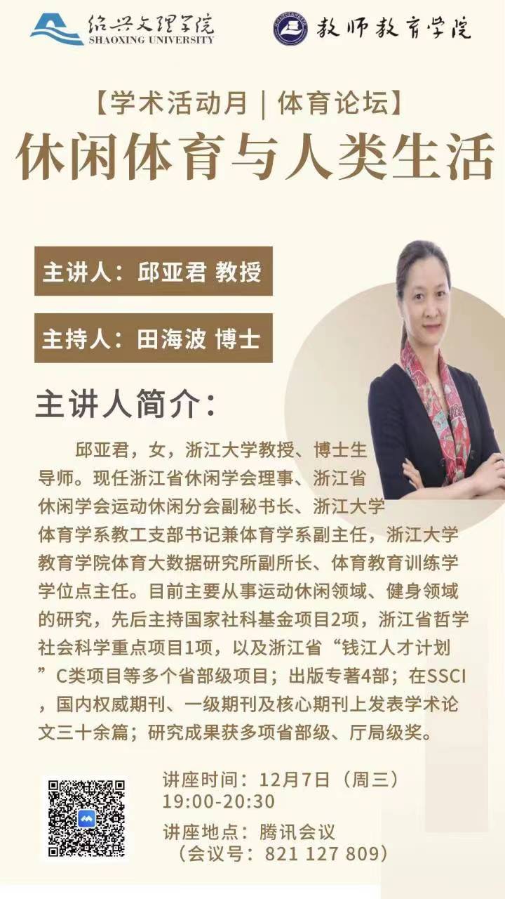 【学术活动月 | 体育论坛】第三讲:休闲体育与人类生活