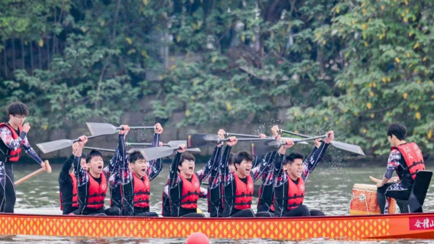 但当时的龙舟队大多都是新队员,基础薄弱、缺乏经验、默契度低,诸多难题堆积在黄楚皓面前。但他和队员们迎难而上,开启了每天“乘舟破浪”的魔鬼式训练。队员们问黄楚皓最多的话是:“是不是龙舟队训练比当兵累?”他总是笑着回答:“现在这些训练跟部队没法比!勤能补拙,付出总会有收获的!”他还会讲一些自己在军营的趣事帮助大家放松情绪,队员们的士气不断凝聚。在冲刺全国赛的过程中,他们更是进行了两个月的加训。全员五点起床,五点半训练,练习结束后召集大家一起复盘动作要领,他们在反思中磨砺,在鼓舞中进步,内心变得更加坚定,做好了迎战的万分准备。