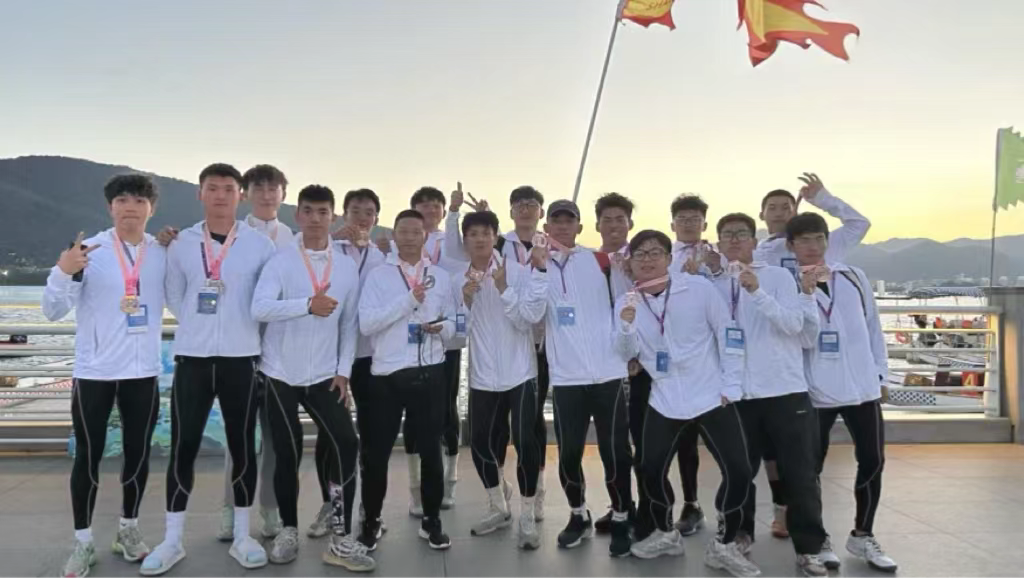 在课余时间,黄楚皓积极尝试不同的新领域,最终,他决定加入校龙舟队。从夯实基础开始,练桨法、抠细节、涨力量、磨意志,在日复一日的练习中,他将对龙舟的这份喜爱转换为了热爱,也承担起了校龙舟队队长这一份责任。望着荣誉墙上绍兴文理学院龙舟队曾在中华龙舟大赛上取得的众多奖杯和证书,一个“再赢一次”的想法,在他的心中悄然萌芽,而且急于破土而发:“我希望能够让绍兴文理龙舟队再一次出现在全国高水平龙舟赛事的舞台上,让龙舟这一传统体育项目被更多的人所看见。”