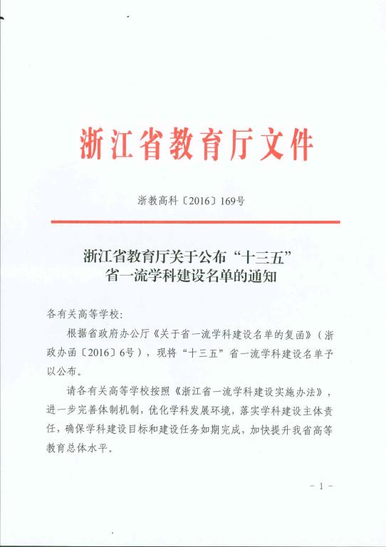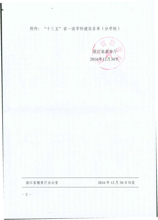 浙江省教育厅关于公布“十三五”省一流学科建设名单的通知